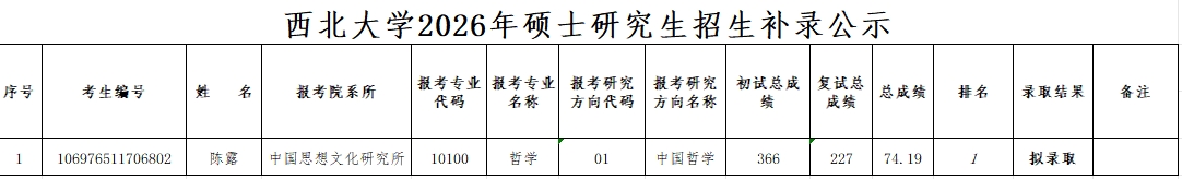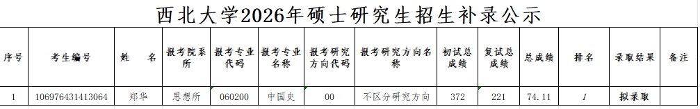 思想所2026年硕士研究生招生补录公示